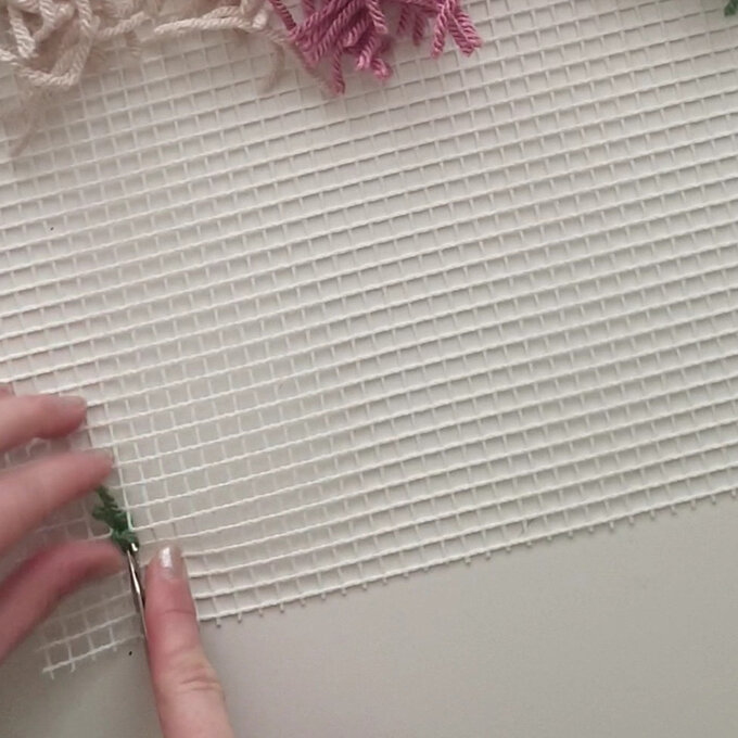 Cut off the excess canvas. You will be working on the parallel horizontal threads and not the twisted vertical threads so make sure the canvas is the correct way before cutting your canvas.