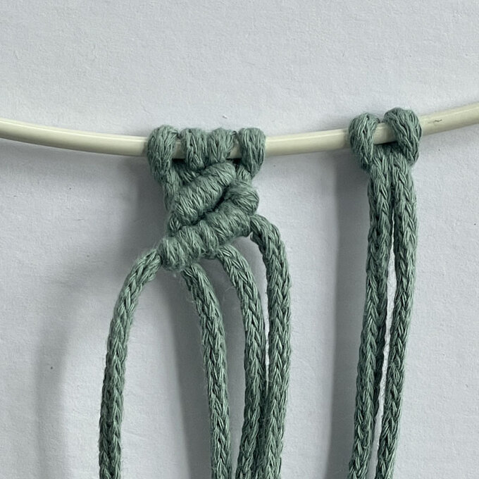 10. Tie 6 strings in Ecru on the right side of the Sage macrame and repeat STEP 2-9.