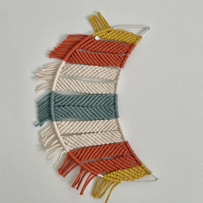16. Add a piece of string at the top of the macrame with a Reversed Lark’s Head Knot to hang it.