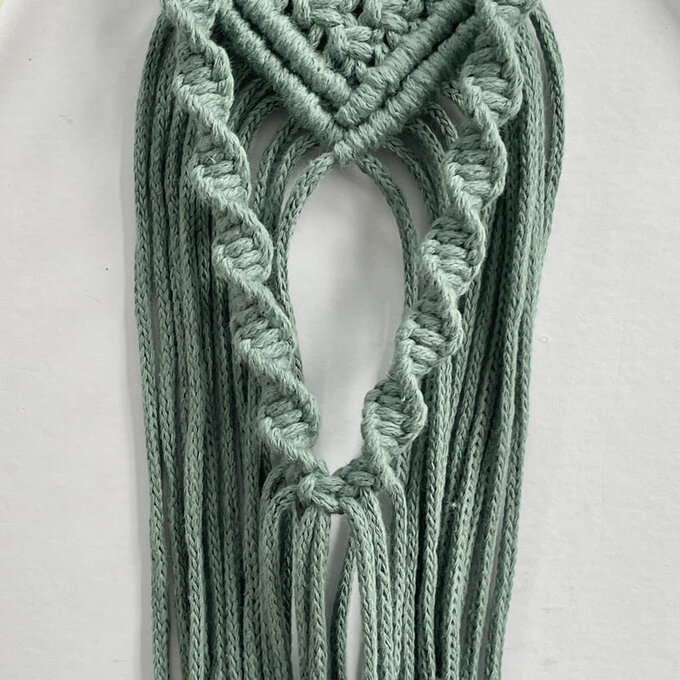 12. Turn the macrame and with the unused strings from the central part, tie decreasing rows of Square Knots to make a triangle shape at the same level as the diamond shape.