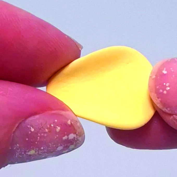 Make six balls of yellow clay roughly 8mm in size. The more you roll, the smoother the clay will become.