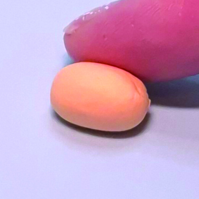 To make the centre of the flower, start with a ball of orange clay around 8mm in size, then gently roll into a cylinder like shape.