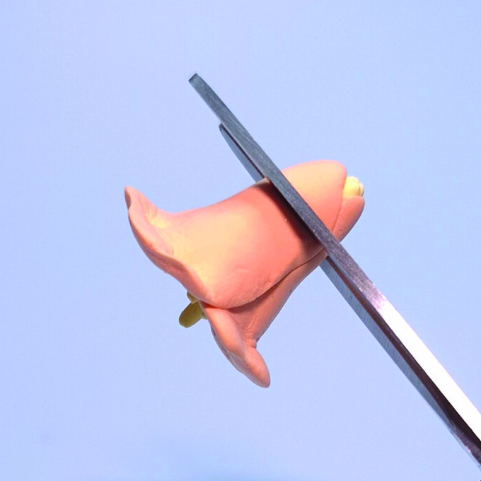 Next, flatten the back before joining it to the petals by removing a little of the clay. You can do this by cutting a bit off with some scissors or tear it off then press it flat.