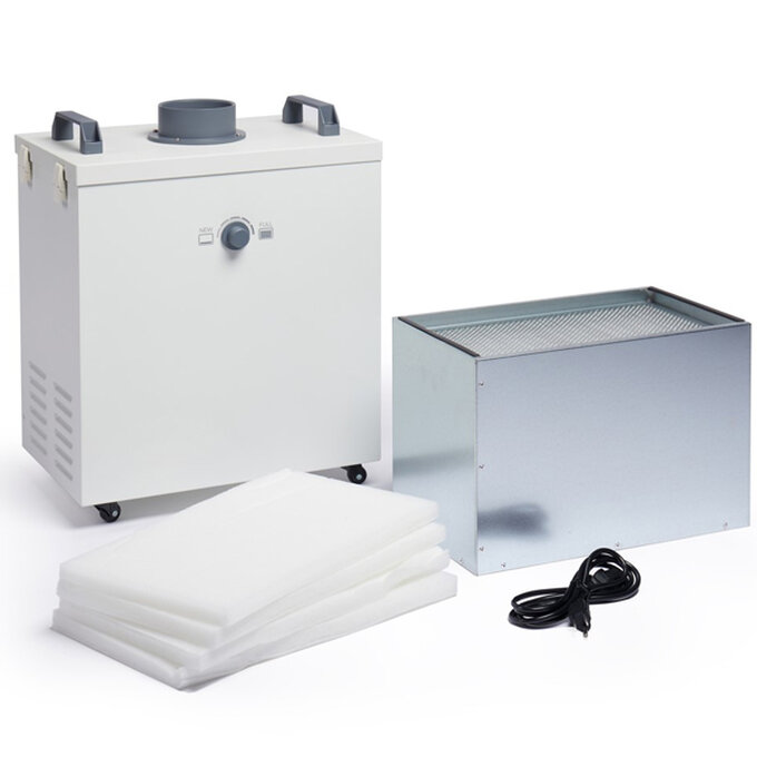 The size of a recycle bin, the Air Filter surpasses the gold standard in filtration, pairing HEPA and advanced carbon technology. It traps over 99.9% of particles in the air while you make something magical.