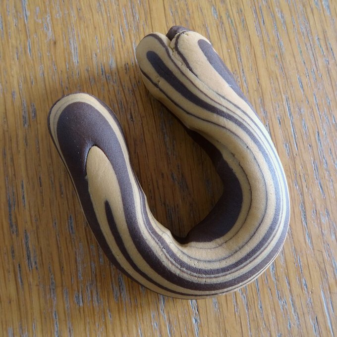 Fold the sausage in half and continue rolling, keep folding in half and rolling until the icing has a woodgrain effect.