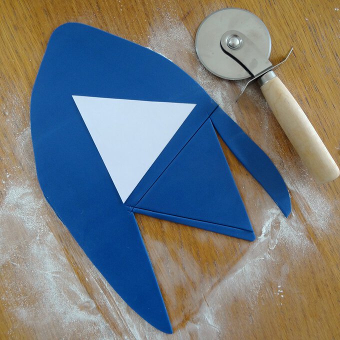 Roll out the blue icing using a rolling pin with 2mm guide rings to ensure even thickness across all of the triangles you will be cutting out.