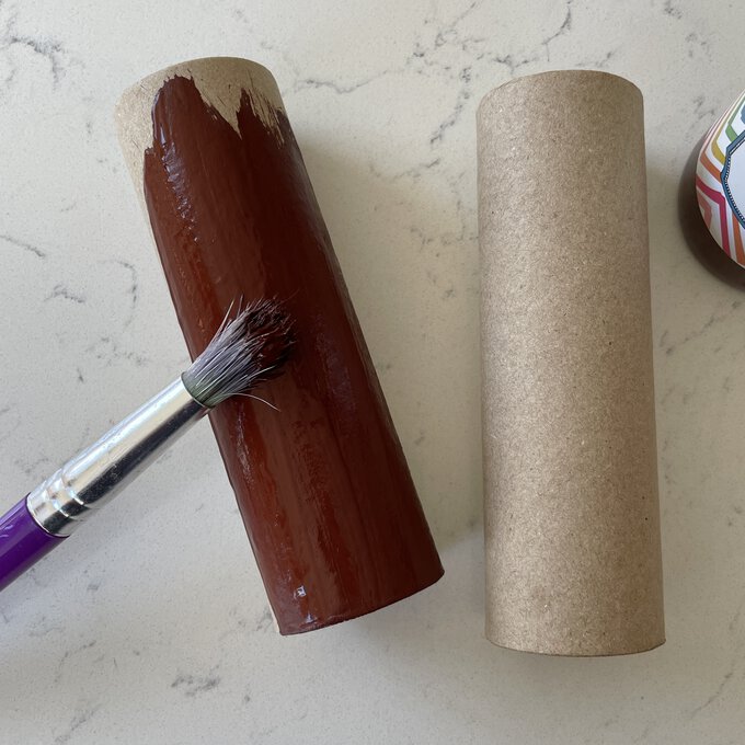 Paint a cardboard tube brown and leave to dry. Apply a second coat and leave to dry again.