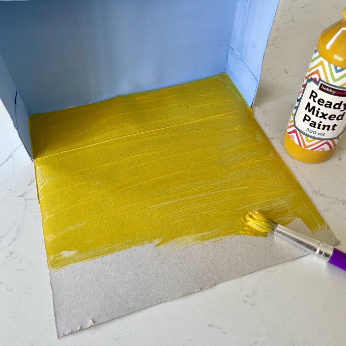 Then paint the bottom yellow. Leave to dry before applying a second coat.