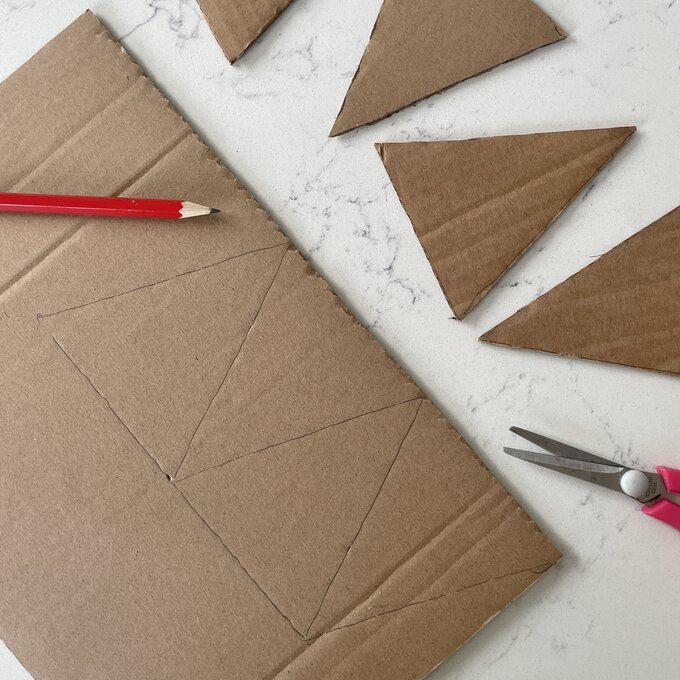 Use the template to draw and cut out 10 identical cardboard triangles.