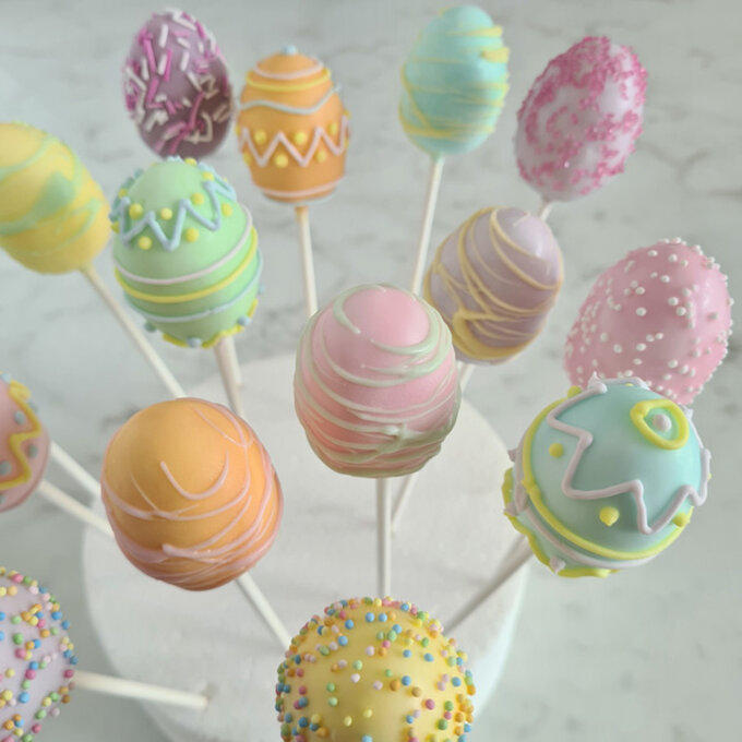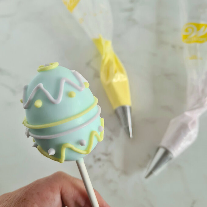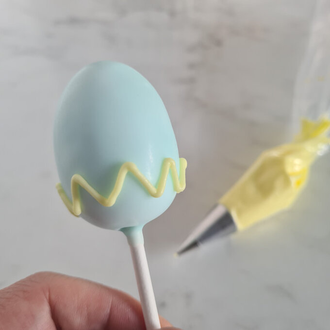 You can drizzle the cake pops with a contrasting colour of Deco Melts, or pipe designs onto the cake pops using Royal icing.