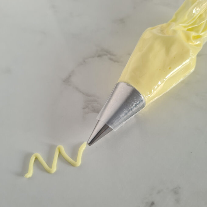 Put the icing into a piping bag fitted with a small round writing nozzle.