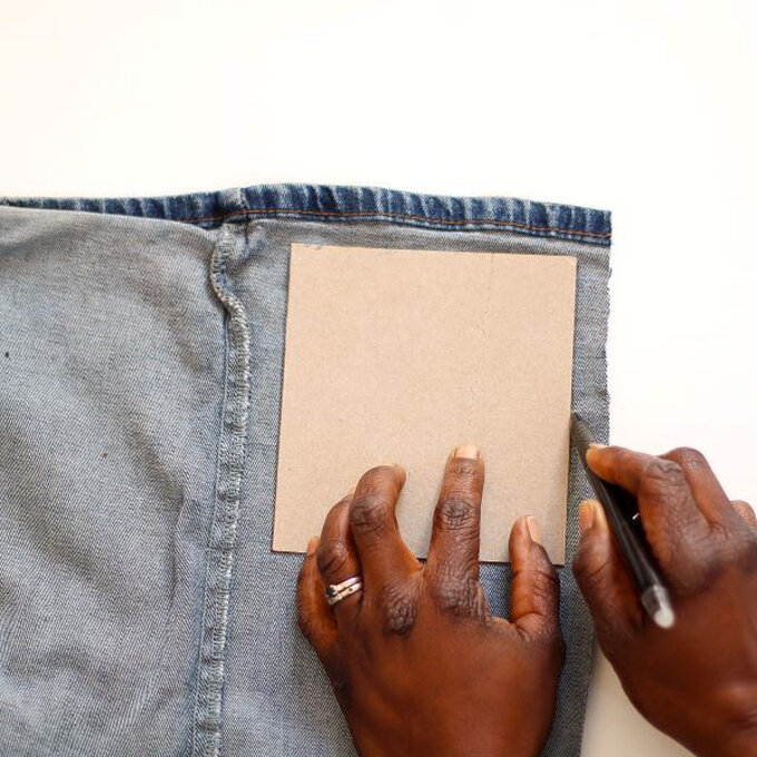 Create a 4.5" square from a piece of cardboard/thick paper, use your fabric pen to mark out 16 squares.