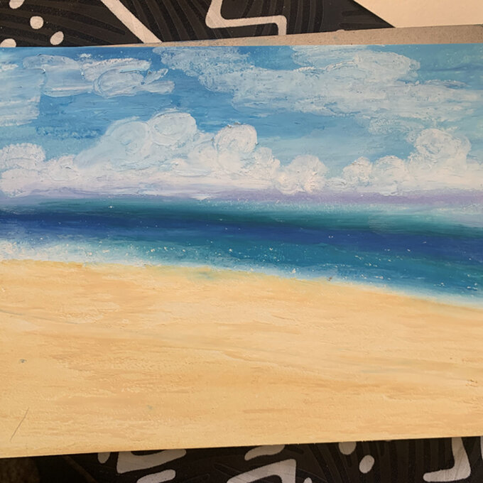 In the example pictured, highlights have been added to the clouds, sea and sand.