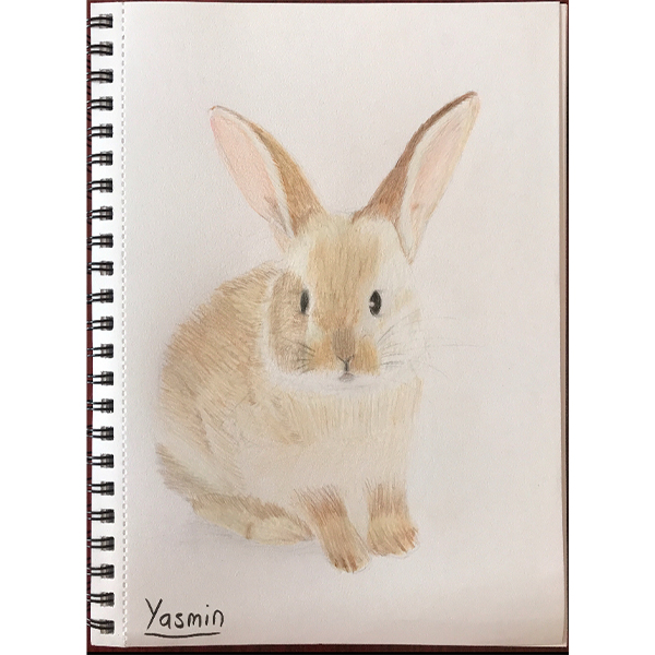 “Yasmin’s drawing blew me away as it is so delicate and sensitive just like a bunny. The pencil strokes mimic the changing hair direction and length beautifully. Yasmin’s care and observation truly captures both the soft light of the fur and the beady black eyes, it rivals a Beatrix Potter! Yasmin you are an phenomenal artist, keep up the great work.” - Junior category judge, Artist Abby Hobbs