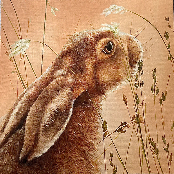 “I really like this beautiful painting of a hare. It has so much atmosphere and a tangible character! On a practical level it has been carefully rendered, it’s very precise but also doesn’t feel like a photograph. You can sense the hare sniffing the grasses or peeking its head through them. There’s also the considered colour scheme and close attention to the variety of different grasses. Lovely, a real jewel of a painting!” - Adult category judge, Artist Wil Freeborn
